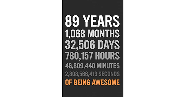 89 Years 89th Birthday Gift 89 Eighty Nine Years Old Months Days Hours Minutes Seconds Of Being Awesome Anniversary Bday Notebook Journal Planner Gift Years Years 9781097465088 Amazon Com Books